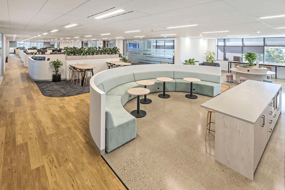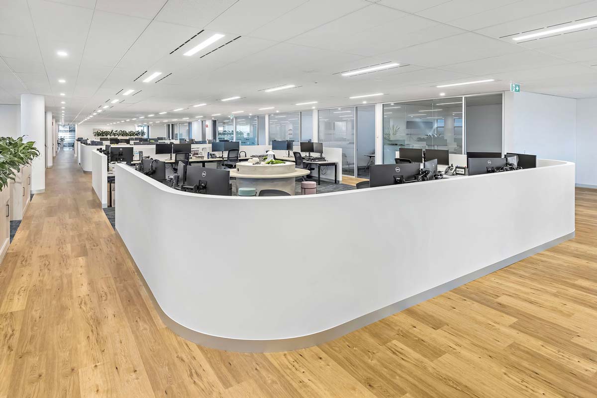 A large section of the fitout is open plan. Any acoustic echoes needed to be mitigated.