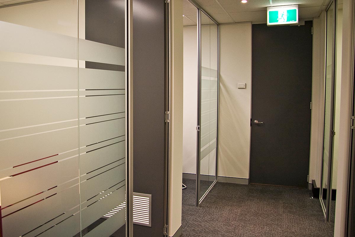 The fitout wall construction was heavily insulated and double sheeted with sound rated plasterboard, but more importantly from a design point of view the interview rooms were located remote from the work and waiting areas.